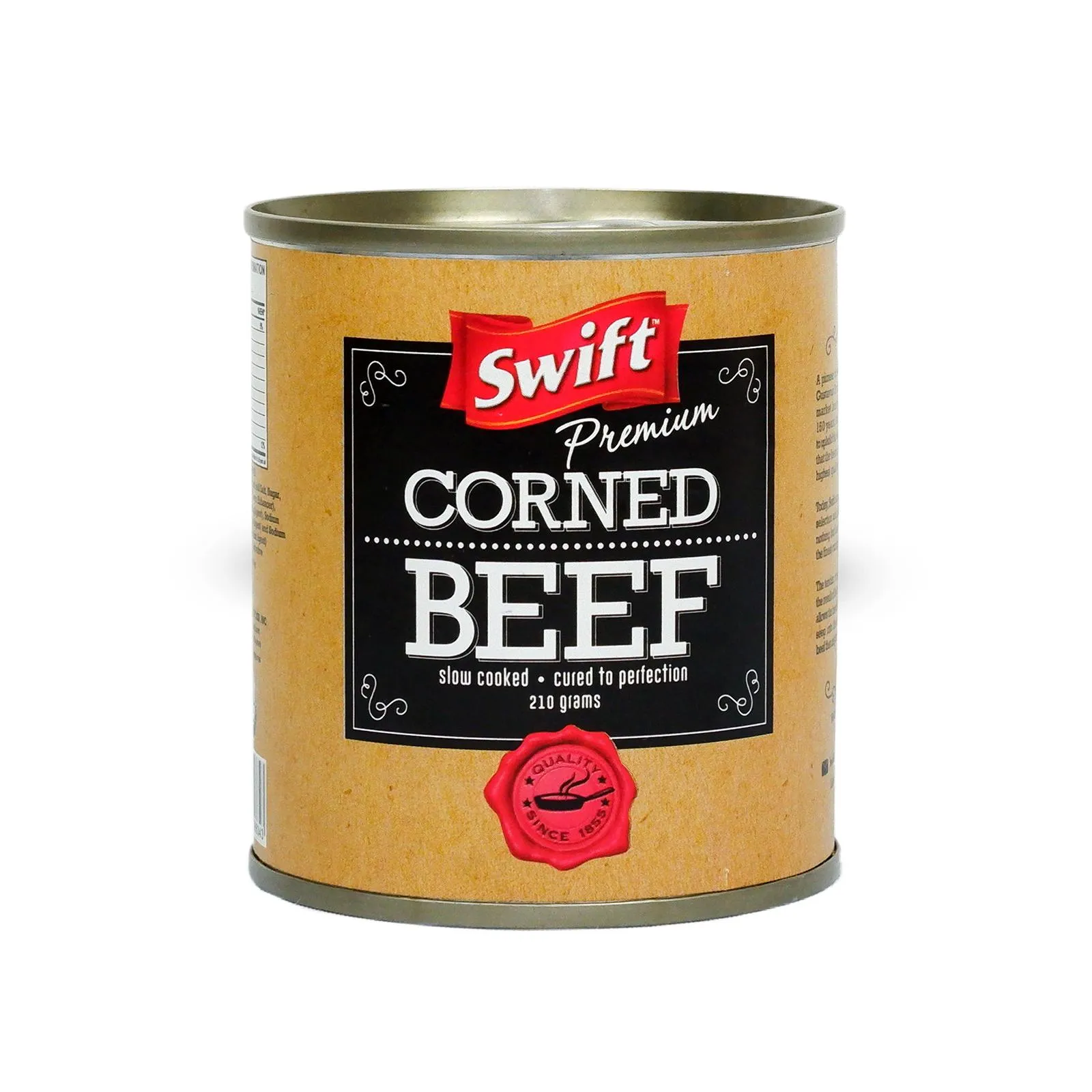 France AJ Holding supplies Swift Premium Corned Beef – HALAL, made from premium beef brisket and carefully seasoned for a savory flavor and tender, moist texture. This shelf-stable, ready-to-eat product is trusted worldwide in retail, foodservice, and humanitarian supply.